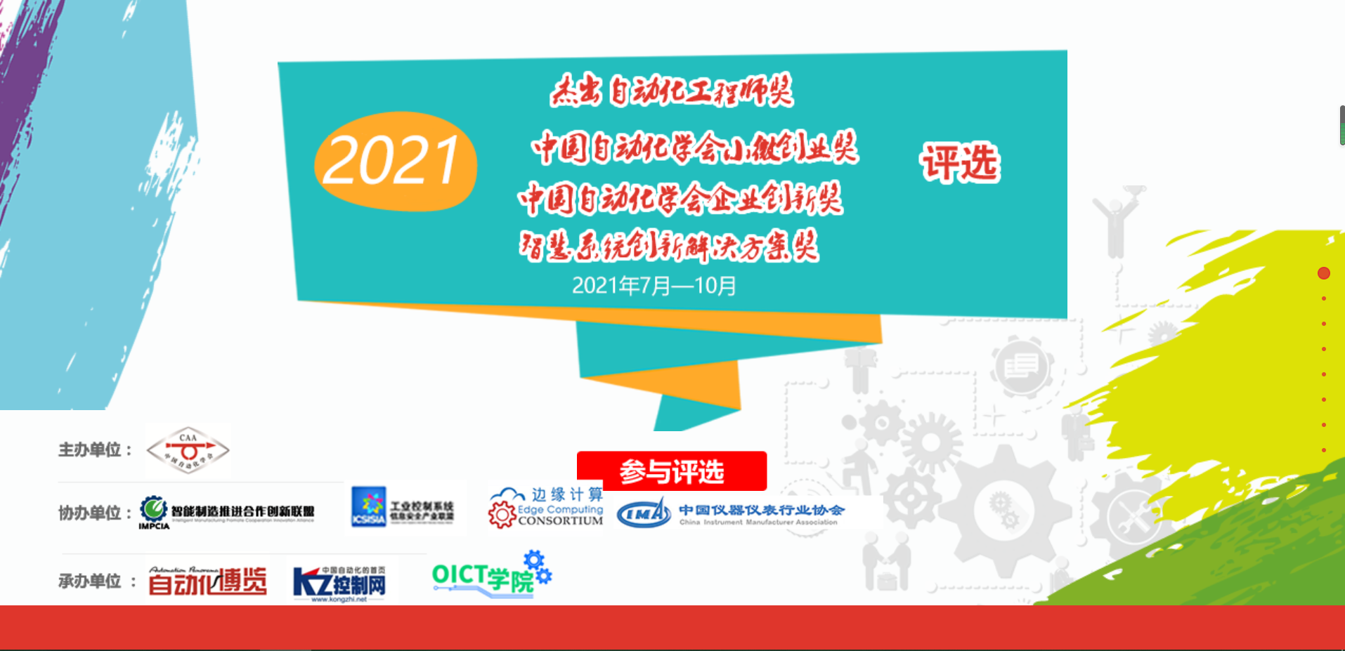 中国自动化学会于2021年7月15日正式启动“中国自动化学会企业创新示范单位”、“杰出自动化工程师” 、“中国自动化学会小微创业示范单位” 及“智慧系统创新解决方案”评选活动。