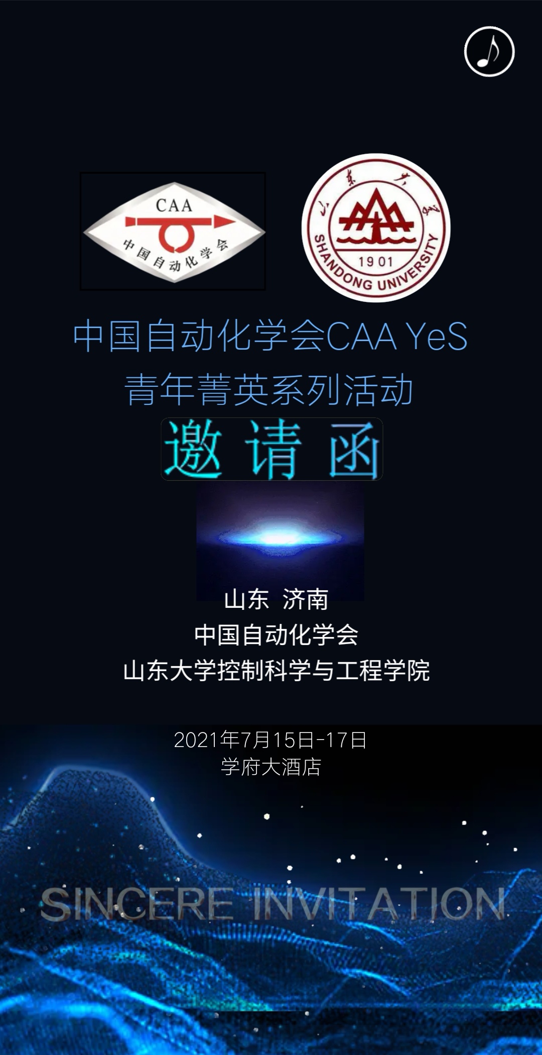 2021年7月15日-17日由山东大学控制科学与工程学院承办的“智能控制青年学者论坛”将在山东济南举行。