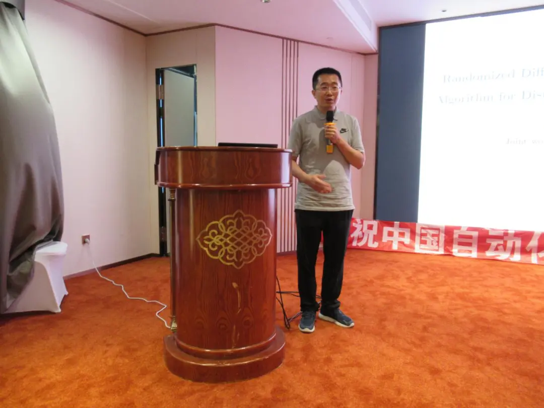 第九位报告人为来自清华大学的游科友教授。报告题目为“完全异步的分布式优化与学习”。报告首先提出了单个节点可在任意时刻进行局部更新的完全异步分布式计算方法;其次,针对分散数据集与传输延迟有界的有向通信网络,设计了完全异步的分布式梯度跟踪算法,并在目标函数为强凸和Lipschitz光滑的情况下证明了算法的线性收敛速率。最后,数值实验验证了所提算法的优越性。