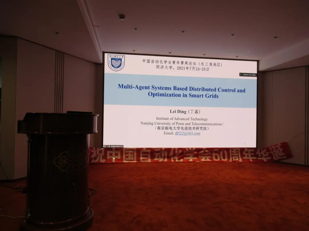 第二十二位报告人为来自南京邮电大学的丁磊教授。报告题目为“Multi-Agent Systems Based Distributed Control and Optimization in Smart Grids”。报告介绍了一种基于多智能体系统的策略来解决智能电网的控制和优化问题,包括交流微电网的分布式二次控制,直流微电网的多目标分布式优化和智能电网的分布式能量管理,方法具有较强的提高效率、可靠性和可扩展性的能力。
