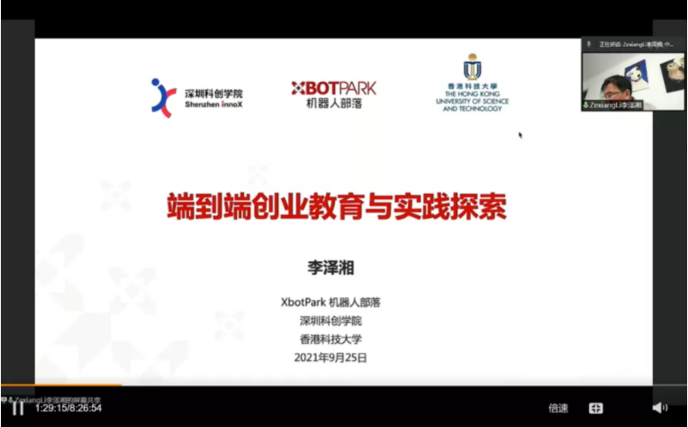 香港科技大学教授、固高科技(深圳)有限公司总经理李泽湘通过线上方式作了题为“端到端创业教育探索与实践”的报告,分享了对国外创新教育发展情况的分析以及对国内创新教育的探索、取得的成果、未来展望等。