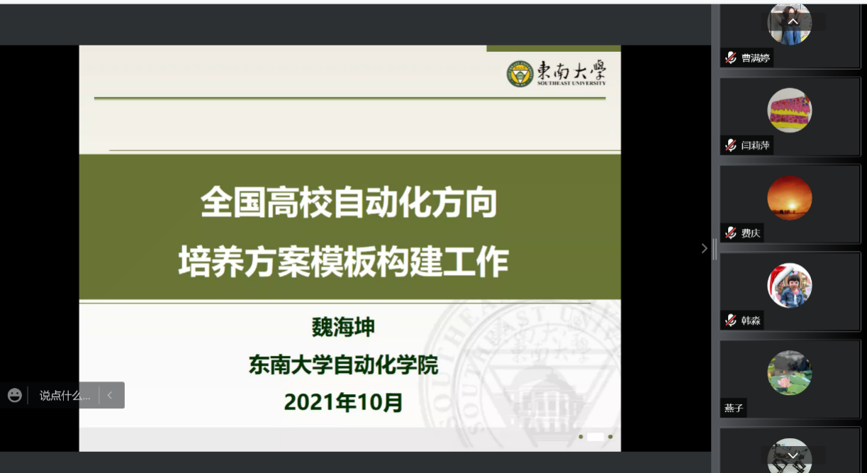 为深入贯彻落实习近平总书记关于“教育强国”理念,加快推进教育现代化,从实际出发开展高等教育理论与实践研究,总结经验,解决问题,探索规律,在新起点上构建高质量教育发展体系,应对新经济形态对自动化专业高等教育提出的新挑战,推动自动化领域高等教育教学改革,2021年10月21日由中国自动化学会教育工作委员会承办的中国自动化大会2021年workshop顺利举办。本次workshop以“自动化领域高质量人才培养”为主题,共同交流研讨高校自动化高水平交叉人才培养、培养方案构建、教学实践体系建设、思政教育等重要问题。