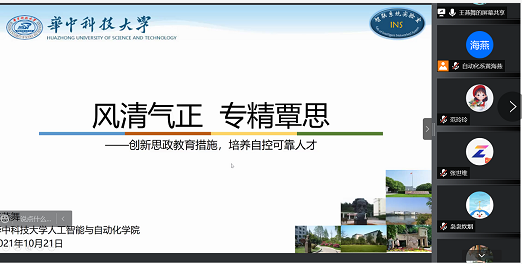 中国自动化学会教育工作委员会副主任委员、华中科技大学王燕舞教授作题为“风清气正 专精覃思 ——创新思政教育措施,培养自控可靠人才”的报告。她提出课程思政是开展大学生思想政治教育的重要途径,结合当代大学生特点和面临的挑战分析开展课程思政的必要性,并根据自动化专业培养目标浅析开展思政教育的主要措施。最后,她针对工学类专业课程特点,以报告人承担的“自动控制原理”课程为例,分析开展课程思政的切入点和主要途径。