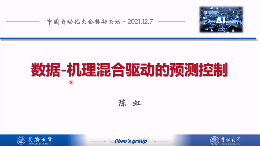 陈虹:数据-机理混合驱动的预测控制