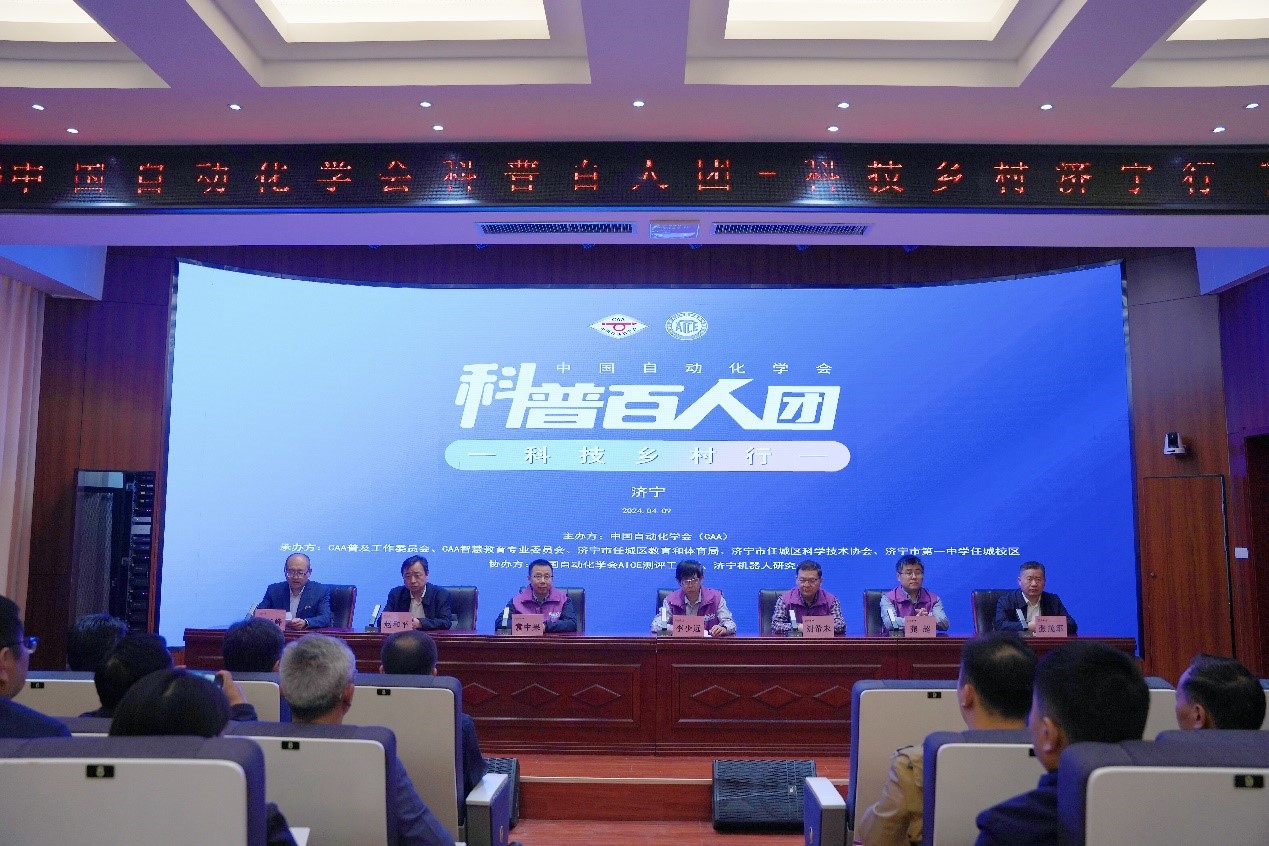 为落实《关于新时代进一步加强科学技术普及工作的意见》和国家乡村振兴战略,开展科技助力乡村振兴行动,2024年4月9日,中国自动化学会在济宁市成功开展了第一期“科普百人团—科技乡村行”系列活动。本次活动由中国自动化学会主办,中国自动化学会普及工作委员会、中国自动化学会智慧教育专业委员会联合承办,中国自动化学会AICE测评工作组协办。本次活动走进济宁市第一中学任城校区、济宁市实验中学、任城区干部夜校,为乡村师生讲授人工智能通识、前沿与发展相关课程,激发青少年对人工智能的学习兴趣,提高科技教师对智能时代青少年AI核心素养培育的紧迫感与使命感。
