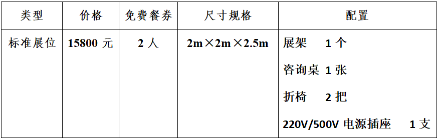 展位规格及费用