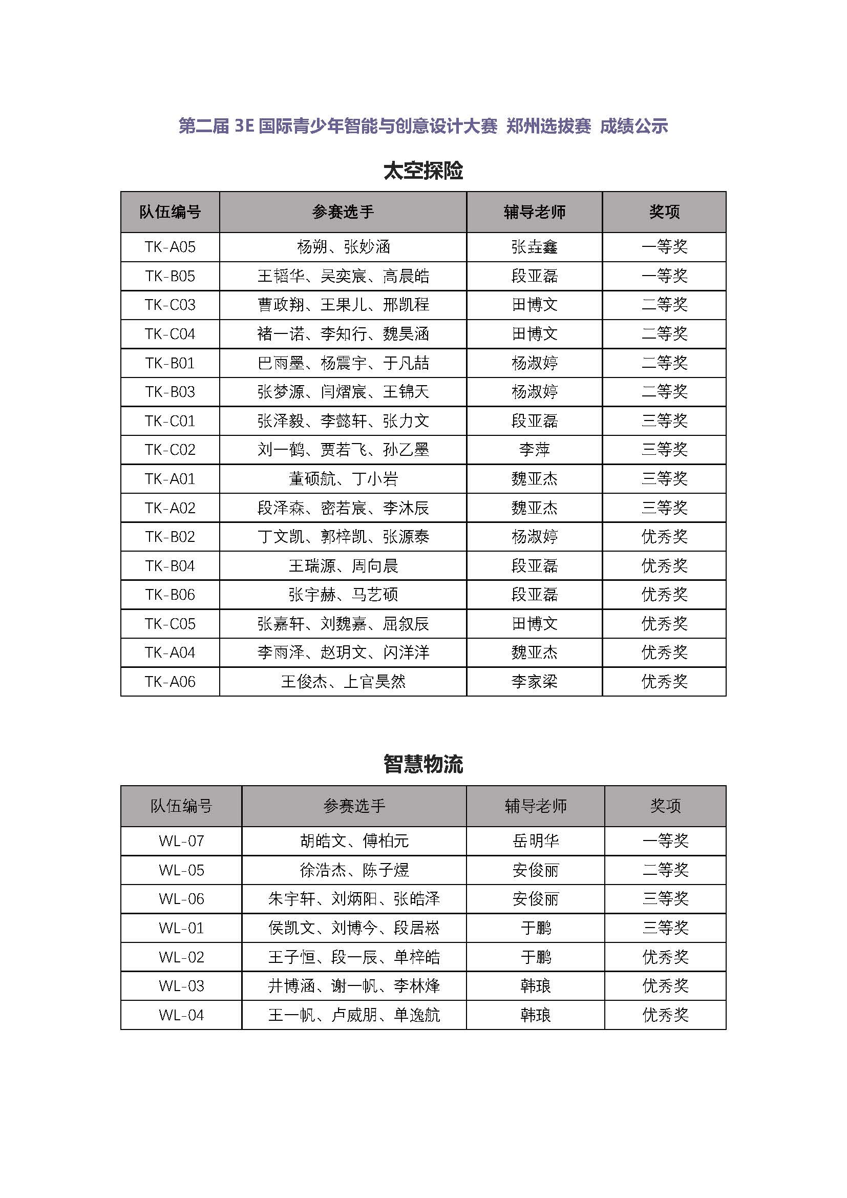 第二届 3E 国际青少年智能与创意设计大赛 郑州选拔赛 成绩公示