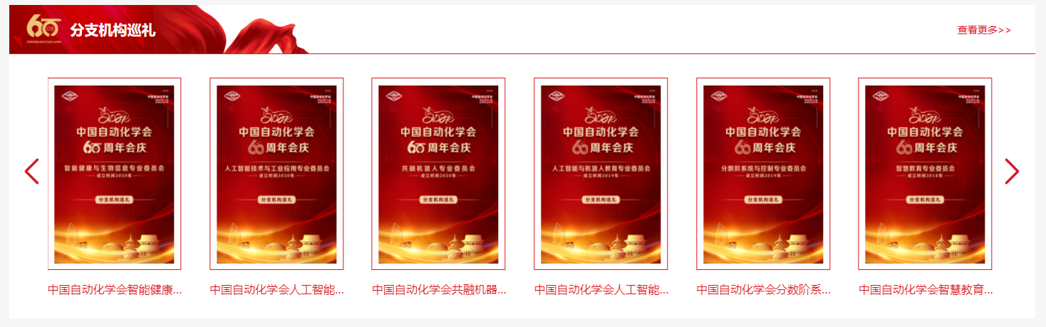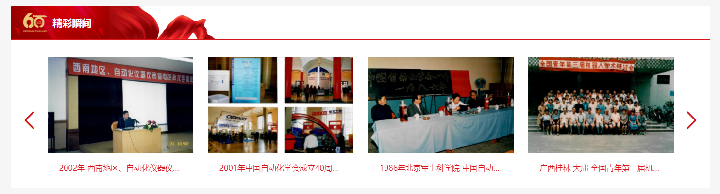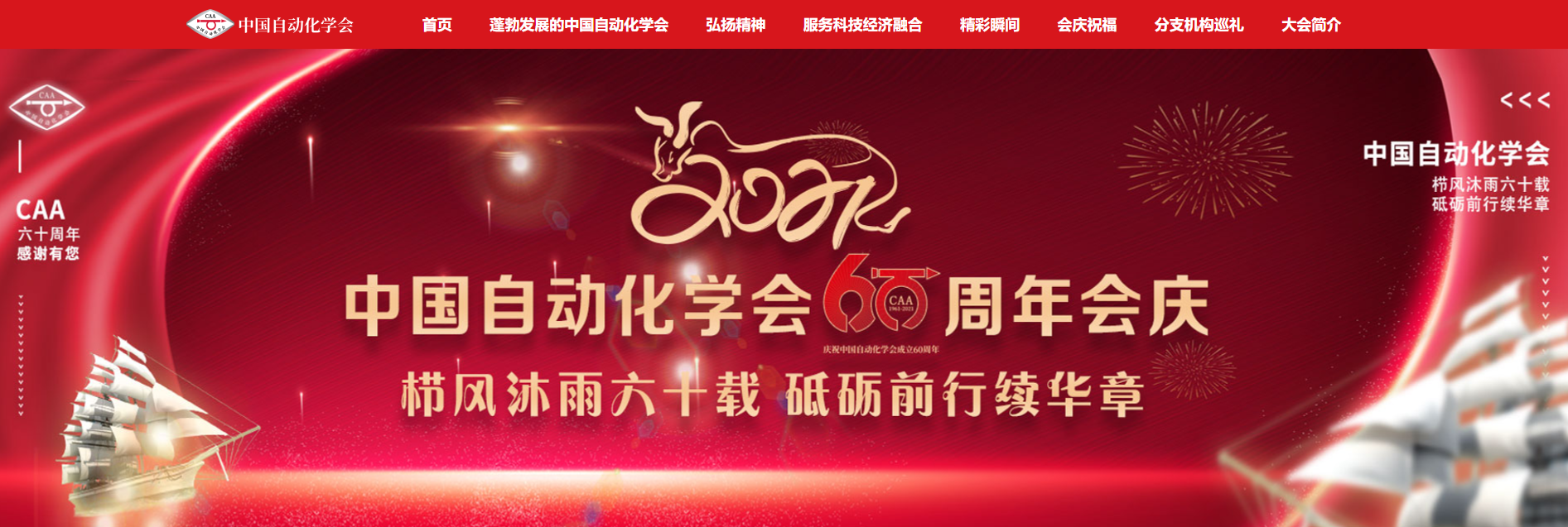 会庆网站主界面以红色烘托会庆氛围,表达了站在两“新”交汇历史节点,中国自动化学会将勇担历史使命,传承弘扬老一辈科学家精神,团结带领广大自动化科技工作者建功新时代,奋力推进自动化高水平自立自强,努力成为自动化科技创新发展策源地和创新高地!专题网站开设了蓬勃发展的中国自动化学会、弘扬老一辈科学家精神、服务科技经济融合、精彩瞬间、会庆祝福、分支机构巡礼、大会简介7个栏目,以图视文结合的方式记录了学会建会60年以来奋斗耕耘的青葱岁月。