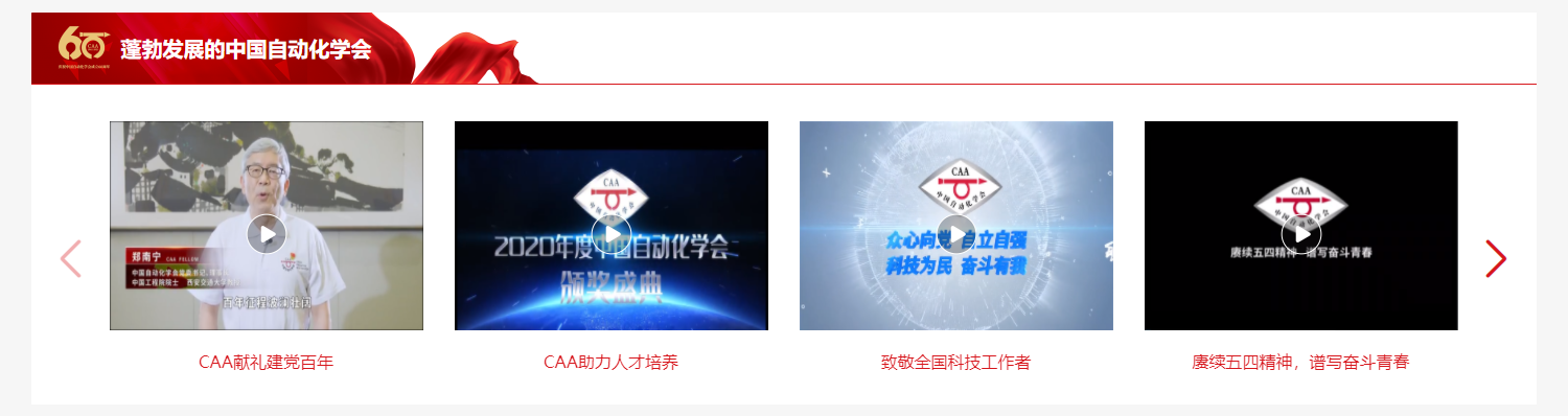 蓬勃发展的中国自动化学会一栏以视频的方式记录了中国自动化学会60年发展历程。