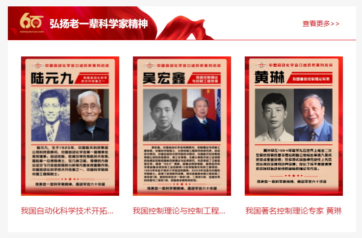 弘扬老一辈科学家精神一栏主要发布了学会特别打造的“口述历史”栏目,走访与学会和自动化学科发展息息相关的老一辈科学家,探寻心灵深处的记忆,记录心路历程的点滴,为当代自动化领域科技工作者了解历史、传承老一辈科学家的宝贵科学思想和精神财富提供有益借鉴。