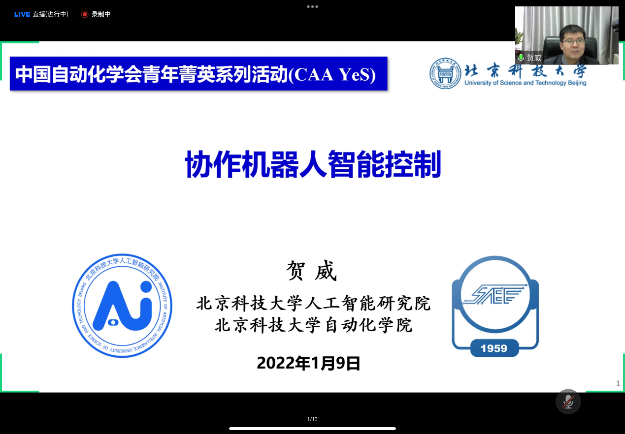 第十五位报告人为中国国自动化学会理事、北京科技大学的贺威教授,报告题目为“协作机器人智能控制”。报告中,贺威教授首先围绕协作机器人高精度跟踪控制问题,介绍多约束条件下不确定机器人智能控制算法;其次聚焦机器人与环境物理交互问题,分析复杂环境下协作机器人阻抗控制策略;进一步考虑多机器人协同作业和人机协作场景,提出几类协作机器人的协同控制方法,并介绍基于以上智能控制策略研发的智能分拣系统、人机协作系统等,最后对相关研究领域进行展望。