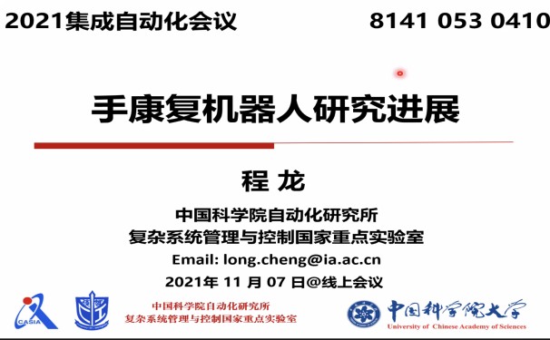 程龙研究员介绍了面向手功能康复机器人的研究背景和研究现状。结合课题组已开展的部分工作,介绍手部康复机器人的具体需求,以及在手部机器人系统设计、主被动控制方法等方面开展的工作。