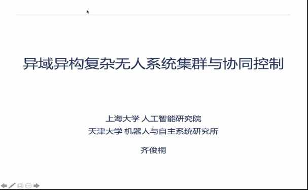 齐俊桐教授结合团队在无人机、无人艇方面的工作,从集群控制技术的特点、难点、技术突破、应用前景等几方面进行了分享。