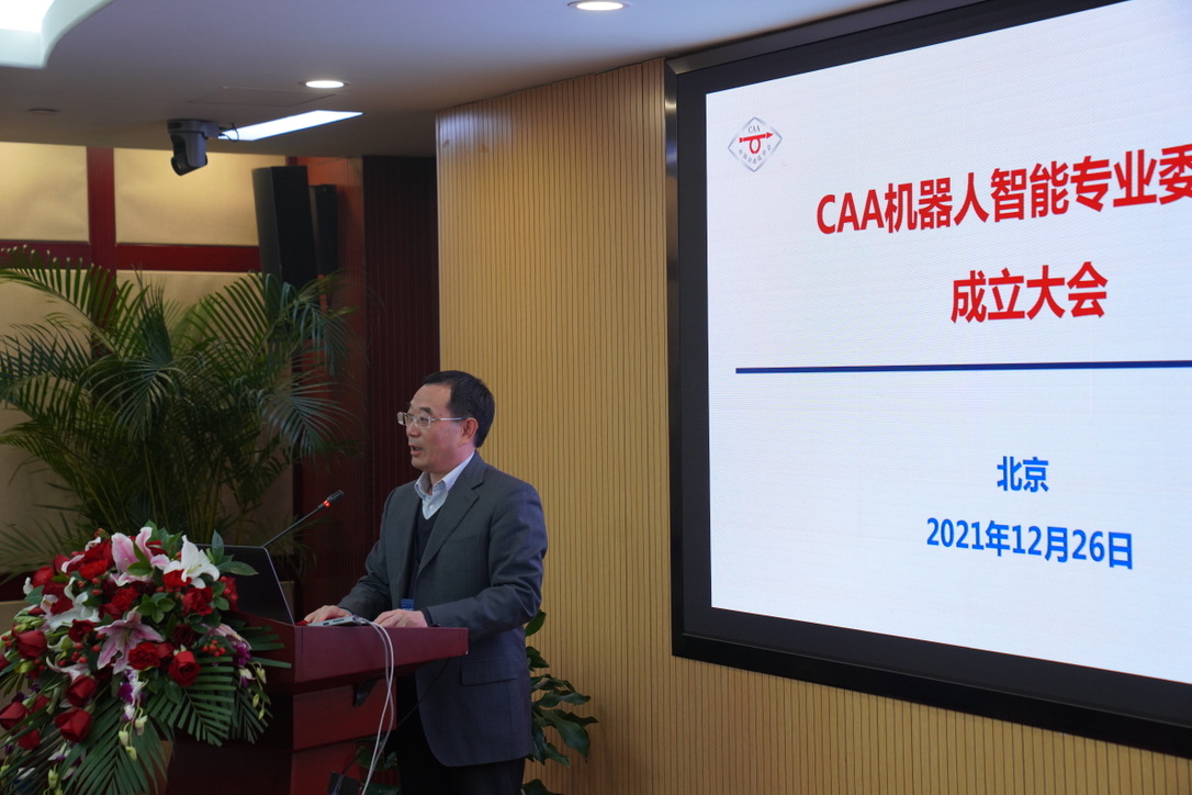 2021年12月26日,中国自动化学会机器人智能专业委员会成立大会暨2021机器人智能高端论坛在北京西郊宾馆召开,会议由中国自动化学会主办,中国科学院自动化研究所、深圳大学、南方科技大学协办。中国科学院院士、华中科技大学校学术委员会主任丁汉,中国工程院院士、天津大学党委常务副书记王树新,中国科学院院士、中国科学院自动化研究所研究员乔红,国家自然科学基金委信息科学部二处处长吴国政,英国皇家工程院院士、伦敦国王学院讲席教授戴建生,英国皇家工程院院士、上海交通大学医疗机器人研究院院长杨广中等致辞和报告嘉宾,中国自动化学会副理事长、中国科学院系统科学研究所所长张纪峰,中国自动化学会秘书长张楠,中国自动化学会副秘书长王坛等学会领导,以及机器人智能专委会的顾问委员、候选委员,以及机器人智能领域的专家和学者出席了本次会议。