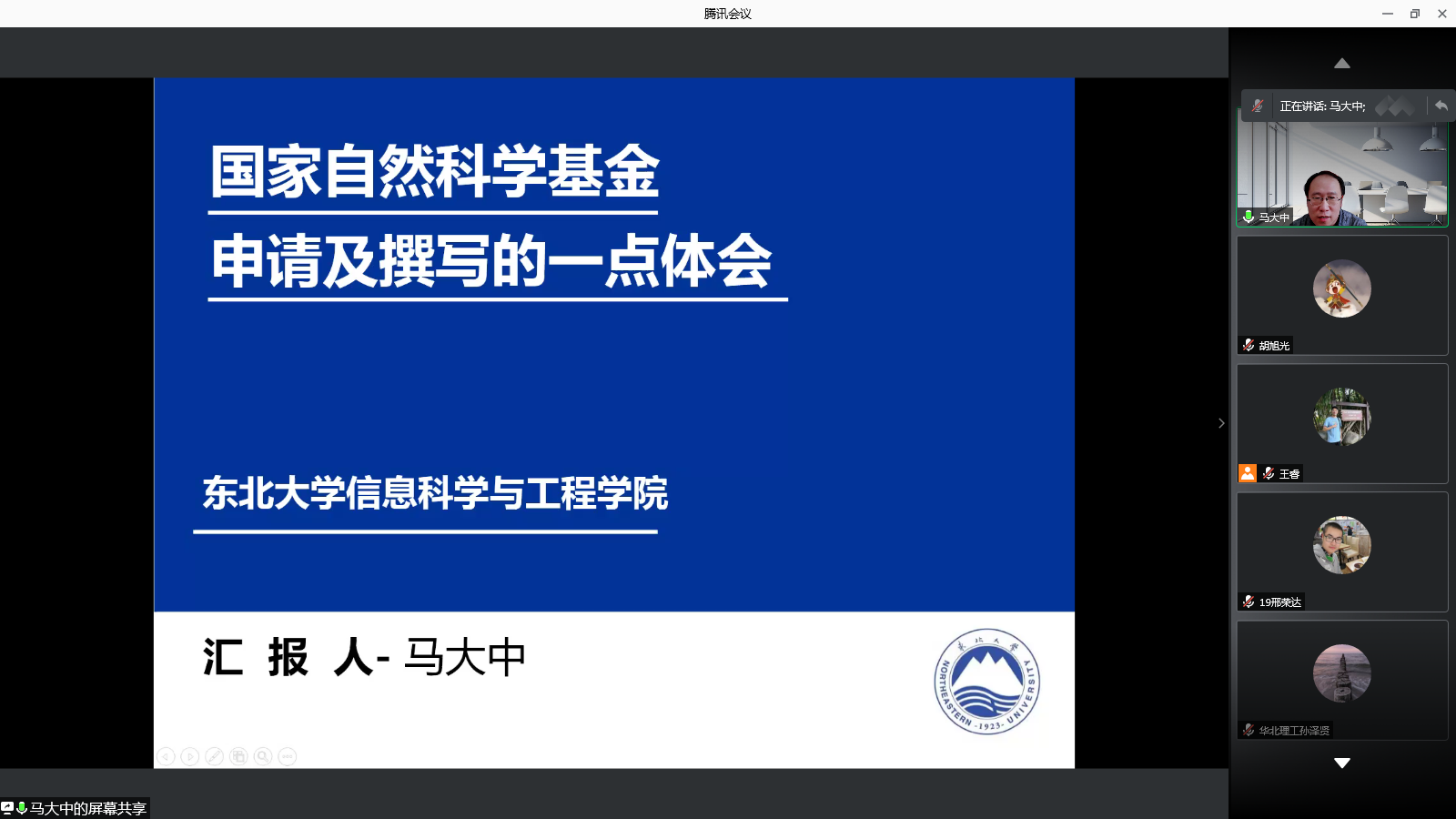 第二场专题报告由东北大学马大中教授主讲,以“国家自然科学基金申请及撰写的一点体会”为报告主旨,从撰写基金申请书的指导思想为出发点进行展开描述,详细讲解了提高申请书质量的方式,要做到研究内容和研究方案切中科学问题,不断反思和打磨申请书每个细节,使得技术路线切实可行。在报告过程中,马大中教授列举了很多生动的例子和以自身申请成功的“基于数模混合驱动的综合能源系统的信息智能获取及状态感知研究”为例,加深了参会人员对报告内容的认知。