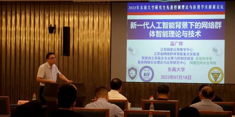 论坛共邀请了7位专家学者作学术报告,包括美国加州大学宫琪教授,北京航空航天大学胡庆雷教授,中国自动化学会副秘书长、北京理工大学邓方教授,同济大学王峻教授,中国科学院数学与系统科学研究院薛文超副研究员,东南大学温广辉教授和杨俊教授。本次论坛的主题涵盖了非线性控制理论与方法、机器学习、智能群系统感知与决策、分布式优化理论方法与应用等多个研究方向。东南大学自动化学院李世华教授、陈从颜教授、杨俊教授、王翔宇副教授、夏金辉博士、王佐博士和北京交通大学朱广宇教授分别主持了报告。论坛上,各位专家作了精彩报告,并与在场的老师及同学们展开了深入交流。论坛规模约40余人。