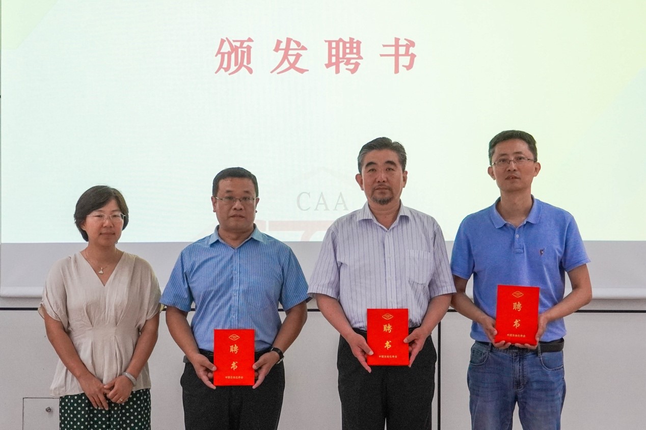随后,中国自动化学会秘书长张楠向天津大学电气自动化与信息工程学院院长谭超教授授予会牌、会旗,并为中国自动化学会天津大学学生分会首届指导委员会与执行委员会成员颁发聘书。