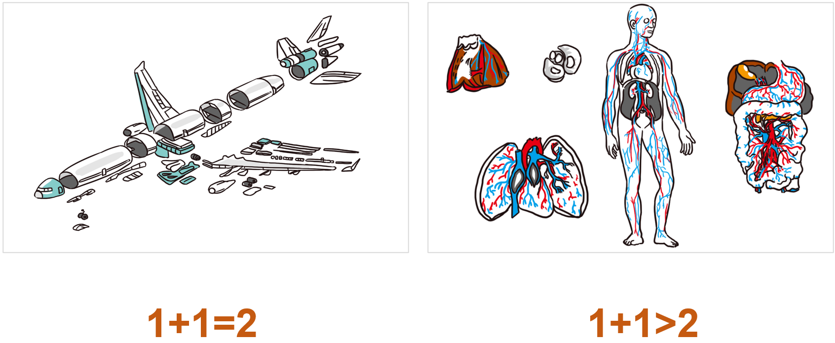还原论虽然不能理解鸟群的集体行为,但对理解飞机就很有效,尽管飞机的零件也不计其数,功能也眼花缭乱,但只要我们明白每个零件的作用,就能完全理解飞机的飞行原理。我们称飞机这样的系统为复合系统(Complexed systems),而像鸟群、大脑这样的系统,即使我们研究清楚了系统的所有组成部分(如每只鸟、每个神经元),也无法理解系统整体涌现的奇观(如鸟群飞舞、意识涌现),这样的系统就是复杂系统(Complex systems),如图1所示。复杂系统研究旨在解决的核心问题就是探索复杂系统背后的简单、普适规律。